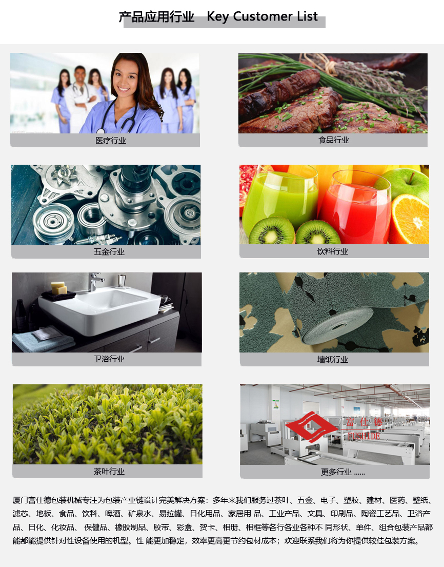 富仕德熱收縮包裝機(jī)械適用行業(yè):