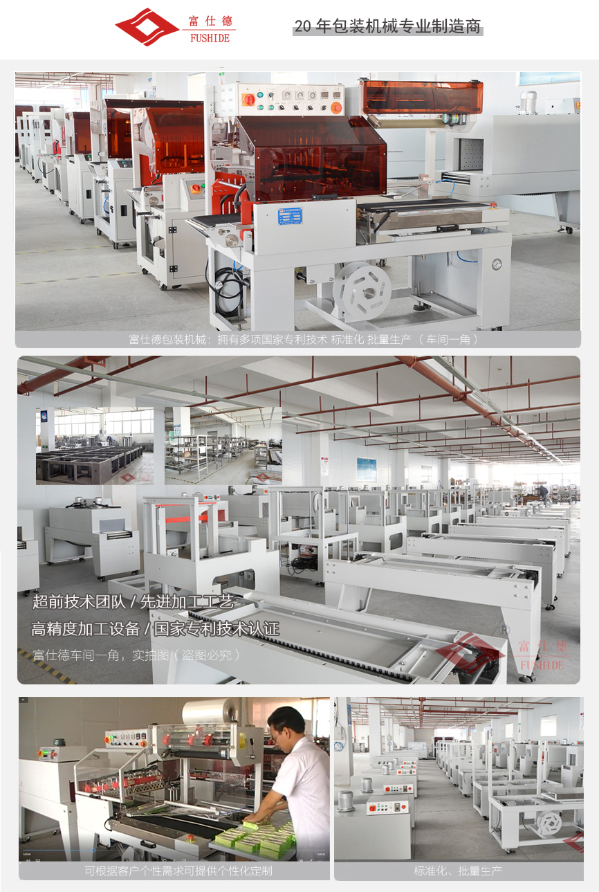 富仕德包裝機(jī)械,創(chuàng)建于一九九八年,是一家專業(yè)從事科研、設(shè)計(jì)、制造和銷售為一體的實(shí)業(yè)公司,生產(chǎn)多個(gè)系列的包裝機(jī)械產(chǎn)品。公司"以質(zhì)量贏信譽(yù),以信譽(yù)創(chuàng)品牌,以品牌贏市場(chǎng)"的經(jīng)營(yíng)理念,狠抓企業(yè)內(nèi)部生產(chǎn)管理,注重科技進(jìn)步和信息在不斷發(fā)展壯大自己的同時(shí),又吸取了廣大用戶的合理建議,使自身產(chǎn)品不斷改進(jìn)創(chuàng)新,使其品質(zhì)更加卓越,性能更加優(yōu)越,結(jié)構(gòu)更具人性化。公司始終一如既往為選擇高端品牌的客戶,提供可靠的產(chǎn)品,完善的售后服務(wù),與之共同發(fā)展,共創(chuàng)佳績(jī)。